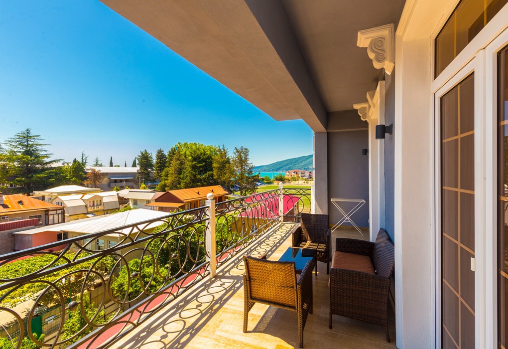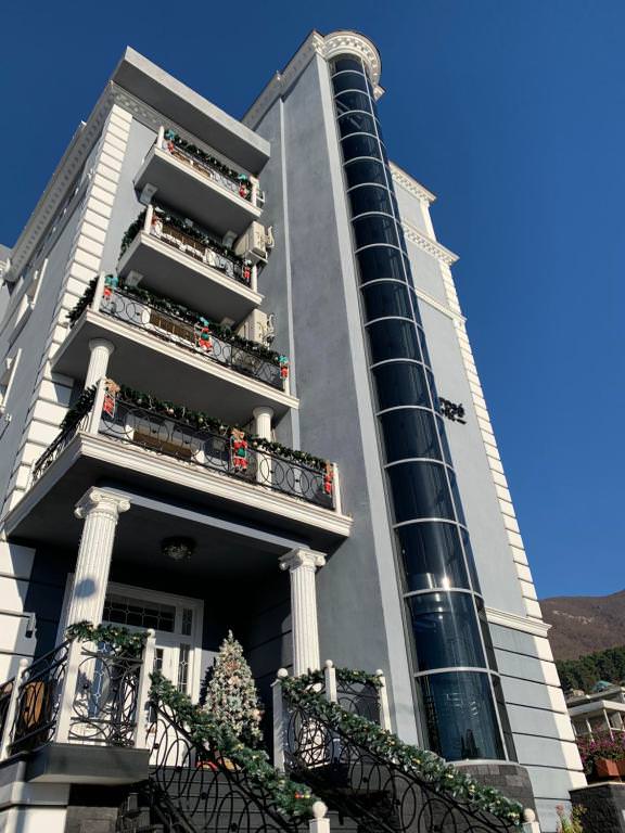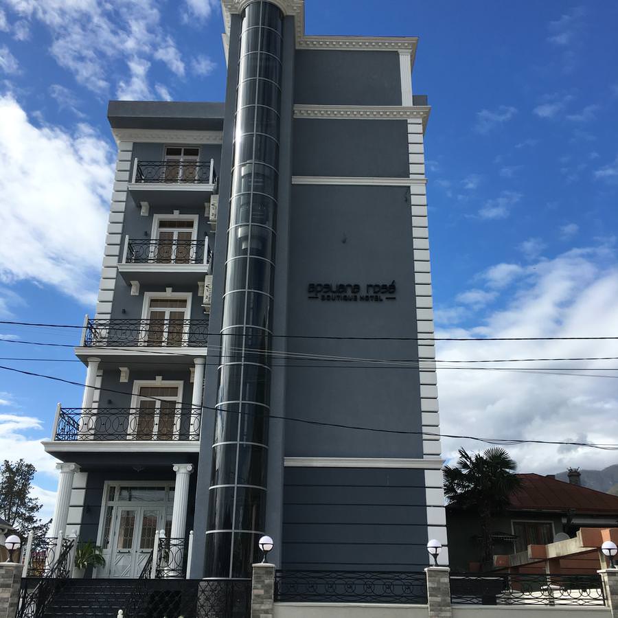 Бутик-отель «Apsuana Rose», построенный в 2016-м году, находится в полутора километрах от центра города Гагры и в 40 километрах от аэропорта в Адлере. Отель окружен разнообразием курортной жизни – ресторанами, кафе, магазинами. По соседству – городская набережная, рынок и аквапарк. Отель соответствует своему названию – он прекрасен и неповторим, идеально подходит для романтического и семейного отдыха. 5-этажное здание отеля имеет панорамный лифт – единственный в Абхазии. Каждый из 30 номеров впечатляет оригинальным дизайном в стиле ретро: в интерьере нет ни одной непродуманной детали. Из окон открывается прекрасный морской пейзаж. В номере любой категории для удобства отдыхающих: удобная современная мебель, телевизор, сейф, центральная система кондиционирования, wi-fi, телефон, теплые полы (в холодное время года), санузел с душем, феном, туалетными принадлежностями, халатом и тапочками. Территория отеля закрыта для посторонних, а гости имеют возможность отдохнуть в зонах релакса – прямо под открытым небом. На пятом этаже отеля работает spa-комплекс, построенный в 2019-м году. Кроме него, «Apsuana Rose» предлагает услуги косметолога по уходу за телом и лицом, хамам, фитнес-зал для занятий йогой и цигун. Для детворы возле отеля создана детская площадка, которая оборудована качественными материалами. Ребята могут безопасно играть на открытом воздухе, не покидая территорию «Apsuana Rose». Позавтракать и поужинать по системе «шведский стол» можно в кафе, расположенном в цокольном помещении отеля. Здесь, в уютной обстановке, можно насладиться вином и красивой живой музыкой. Около отеля есть еще одна роскошь – песчано-галечный пляж с зонтами и лежаками. Здесь радует не только море, но и активный отдых – игры с мячом, бадминтон, настольные игры и мангал.